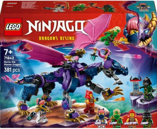 Plongez dans la troisième saison de la série NINJAGO: L’Avènement des dragons et maîtrisez le puissant dragon Rontu. Le modèle séduit par ses ailes, sa queue, sa tête et sa mâchoire articulées pour adopter des poses dynamiques. Sur son dos se trouvent deux selles pour minifigurines et, sous chaque aile, un lance-projectiles pour des combats trépidants.
