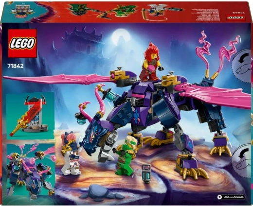 - Ailes, pattes, queue, tête et mâchoire articulées; 2 selles pour minifigurines; lance-projectiles sous les ailes