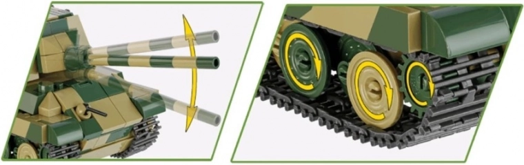 - Éléments fonctionnels: Tour mobile, roues rotatives avec système de mouvement à chenilles fonctionnel et motifs authentiques.