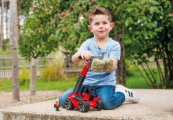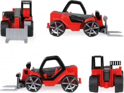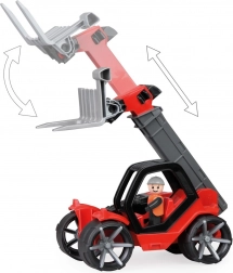 La chargeuse télescopique Truxx2 est fabriquée en plastique de haute qualité et possède une structure très robuste. Elle comprend également une cabine amovible avec figurine et des roues caoutchoutées pour un fonctionnement silencieux.