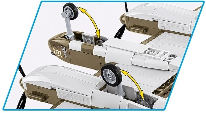 Le modèle P-38H comprend des parties mobiles, telles que des hélices rotatives et un train d’atterrissage repliable, pour une mise en scène réaliste et la simulation de situations de vol.