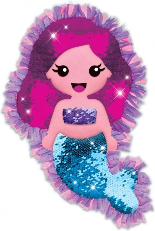 Découvrez une façon ludique de créer votre doudou tout doux – assemblez le coussin sirène simplement grâce à des nœuds. Pas de couture ni d’aiguille, juste le plaisir de créer. Les pièces prédécoupées en polaire douce, paillettes et feutrine sont adhésivées et prêtes pour un montage rapide.