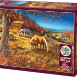Puzzle COBBLE HILL Rencontre sur la pente 2000 pièces offre une difficulté accrue grâce aux formes inhabituelles des pièces, qui ne suivent pas une grille classique. Profitez d’un puzzle unique au motif magnifique !