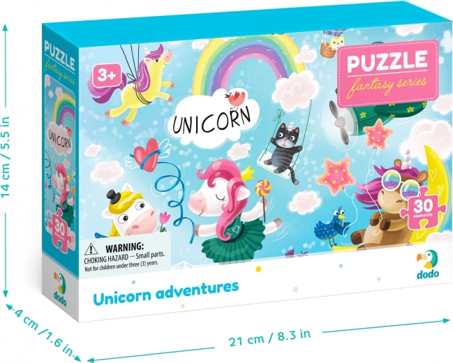 Puzzle Aventure des licornes, 30 pièces, image 27 x 20 cm. Idéal comme cadeau pour les petits fans de contes de fées.