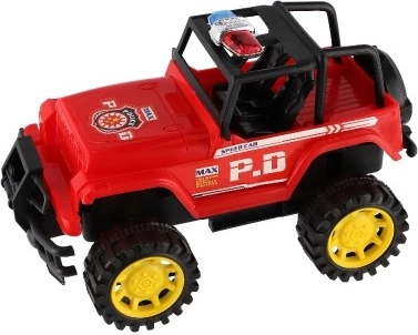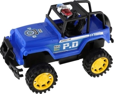 Le design off-road robuste avec châssis haut et grandes roues assure une tenue sûre sur le « terrain » de la chambre d’enfant comme au jardin. Le look police avec inscriptions visibles favorise le jeu de rôles et stimule l’imagination. Grâce au mécanisme à inertie, une simple poussée suffit pour avancer sans piles.
