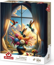 Puzzle Symphonie d'ailes et de fleurs avec 500 pièces offre une image colorée et détaillée au thème de la nature, qui illuminera votre esprit et raccourcira les longues heures.