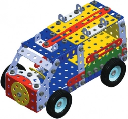 Nous présentons l'ensemble de construction MERKUR 3, idéal pour les petits ingénieurs et leurs parents. Ce classique ensemble monocoque comprend 273 pièces y compris des bandes, des arcs, des angles, des roues et des pneus. La boîte contient également des vis et des écrous nécessaires pour assembler une vaste gamme de modèles.
