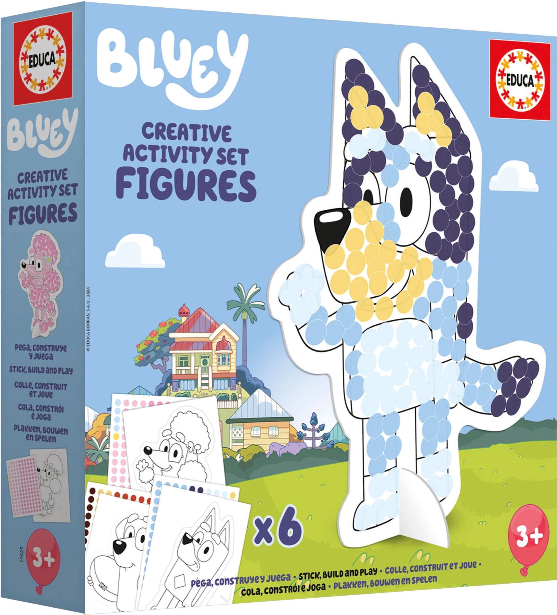 Kit créatif pour enfants comprenant la décoration de personnages ou d’objets en carton à l’aide d’autocollants colorés. Un excellent divertissement pour les enfants une fois les personnages assemblés en 3D.