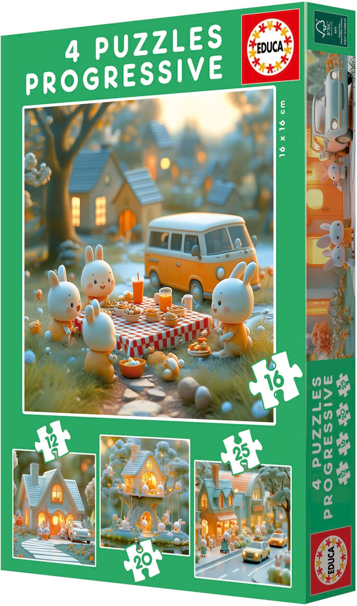Découvrez la joie des puzzles avec cet ensemble EDUCA Ville des Lapins 4-en-1. Ce coffret propose quatre puzzles de difficulté croissante :