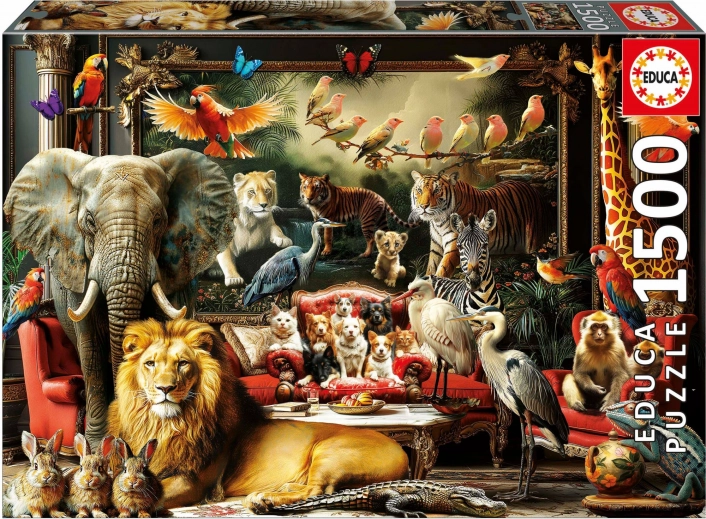 Puzzle Manoir des animaux 1500 pièces avec motif et colle offerte. Dimensions 85 x 60 cm.