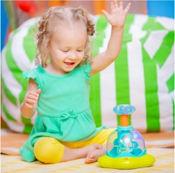 Cette toupie colorée unique est un excellent choix pour les enfants dès l’âge de 6 mois. Le jouet propose jusqu’à 20 mélodies différentes qui divertiront chaque enfant et créeront une atmosphère joyeuse. Grâce à la possibilité de régler le volume, le son peut être facilement adapté à l’environnement et aux besoins individuels de l’enfant.