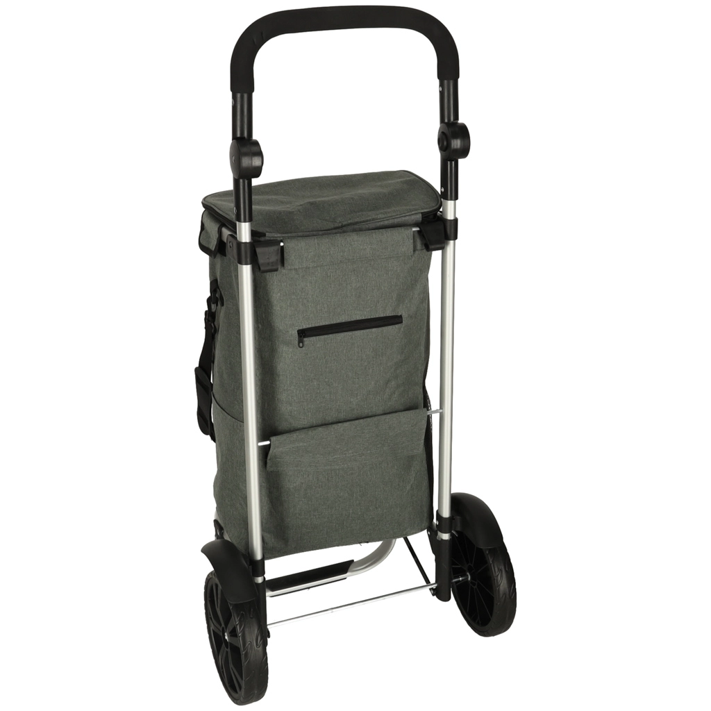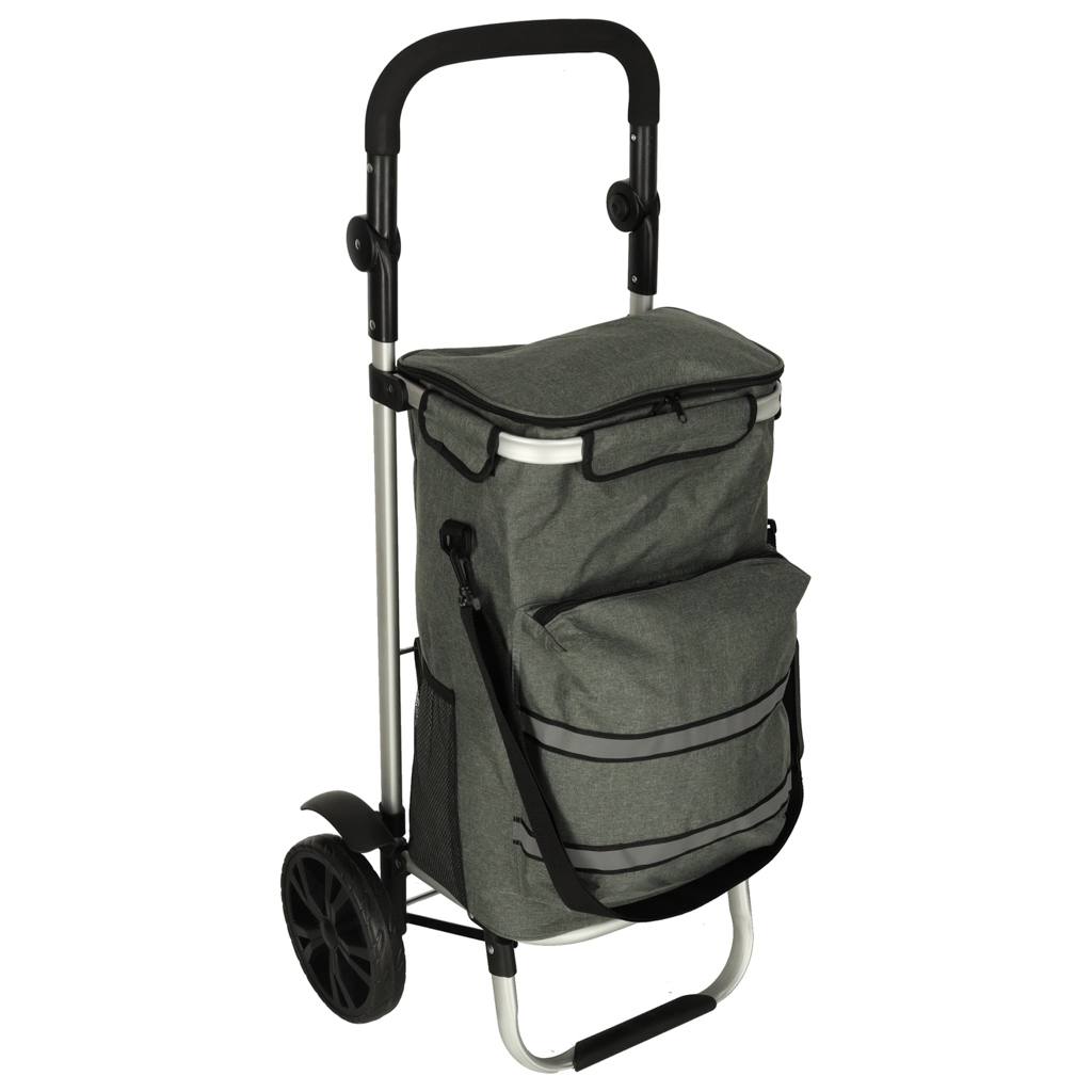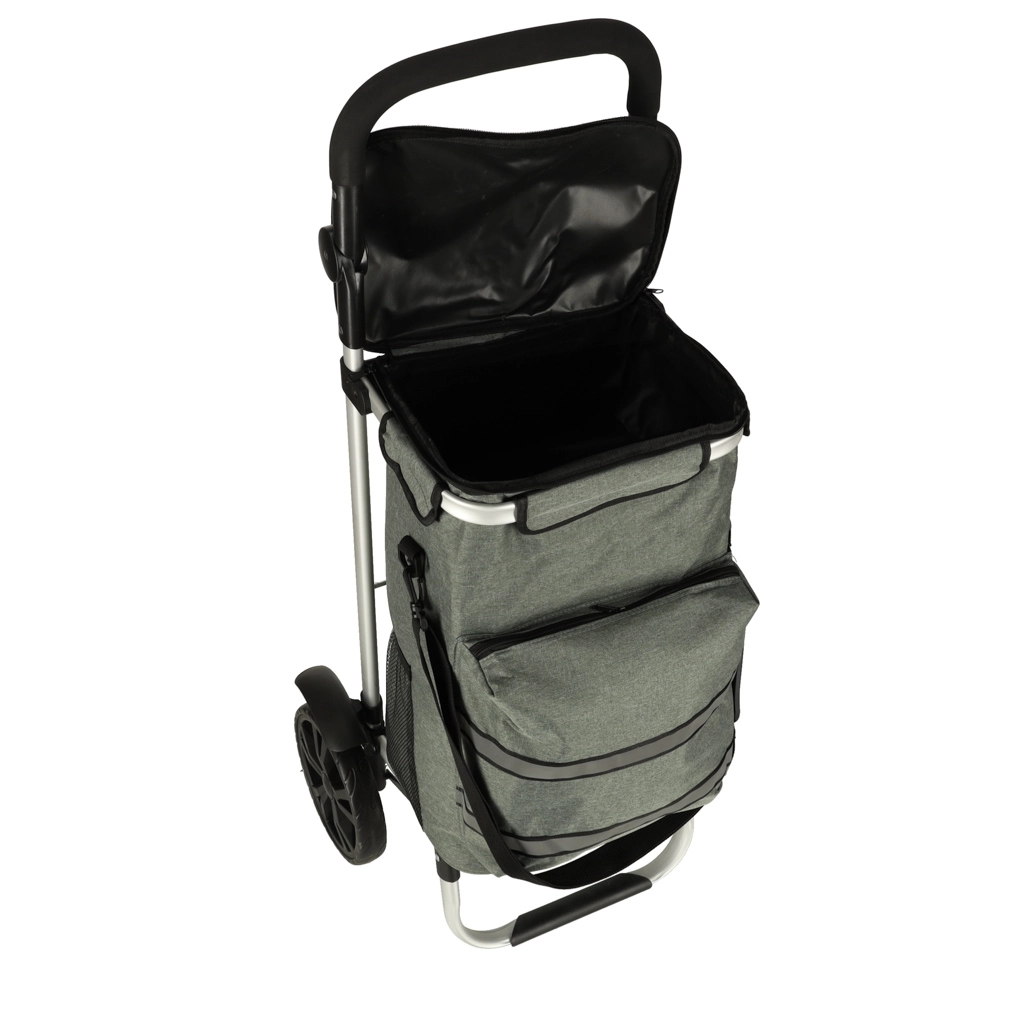 Le chariot dispose d’un intérieur spacieux de 40 litres et est équipé d’une poche isotherme pour le stockage d’aliments réfrigérés. Grâce à la poignée ergonomique et aux grandes roues, le chariot est facile à manœuvrer.