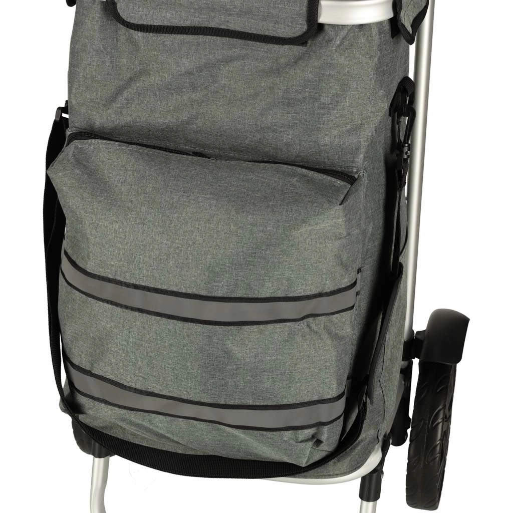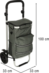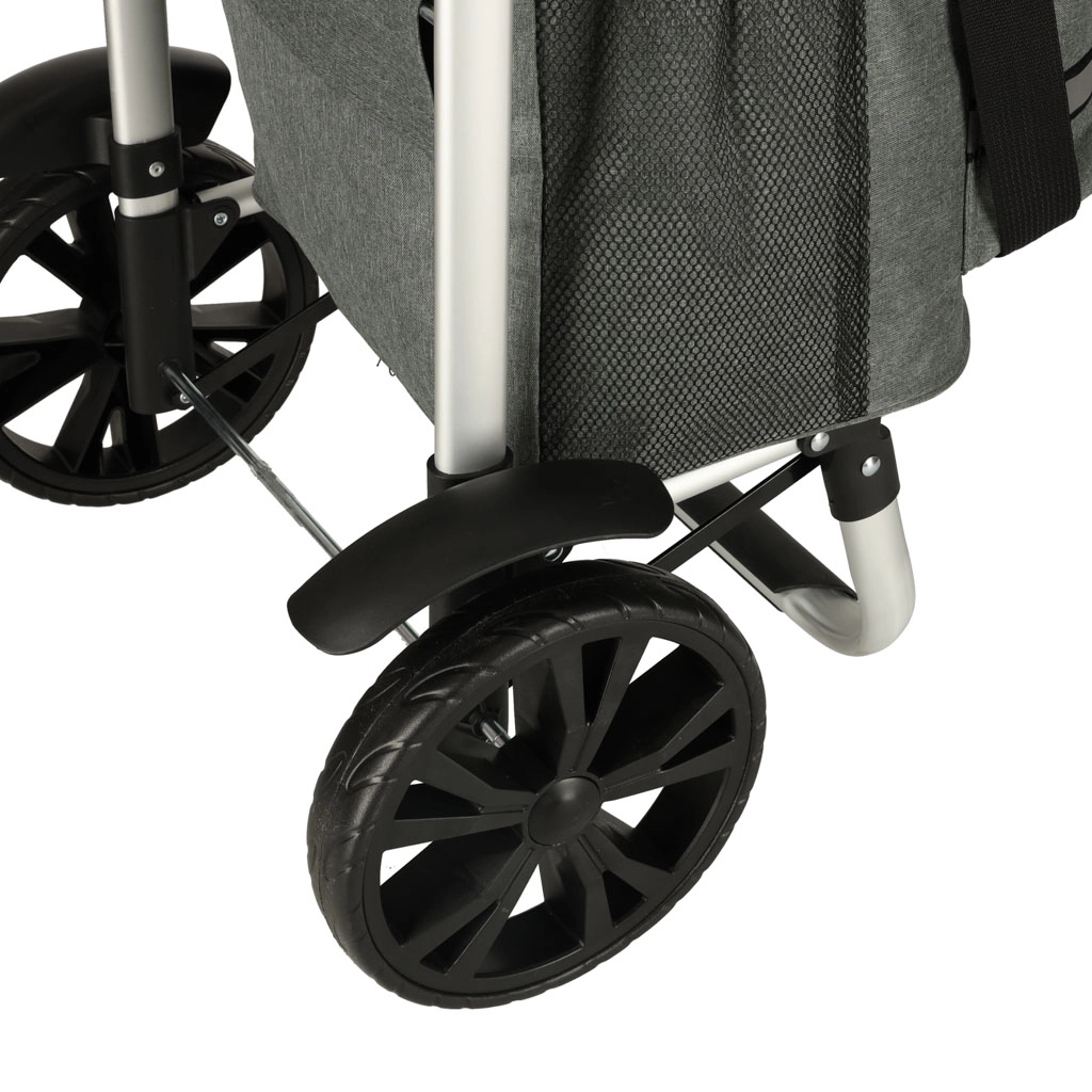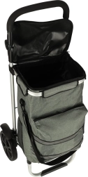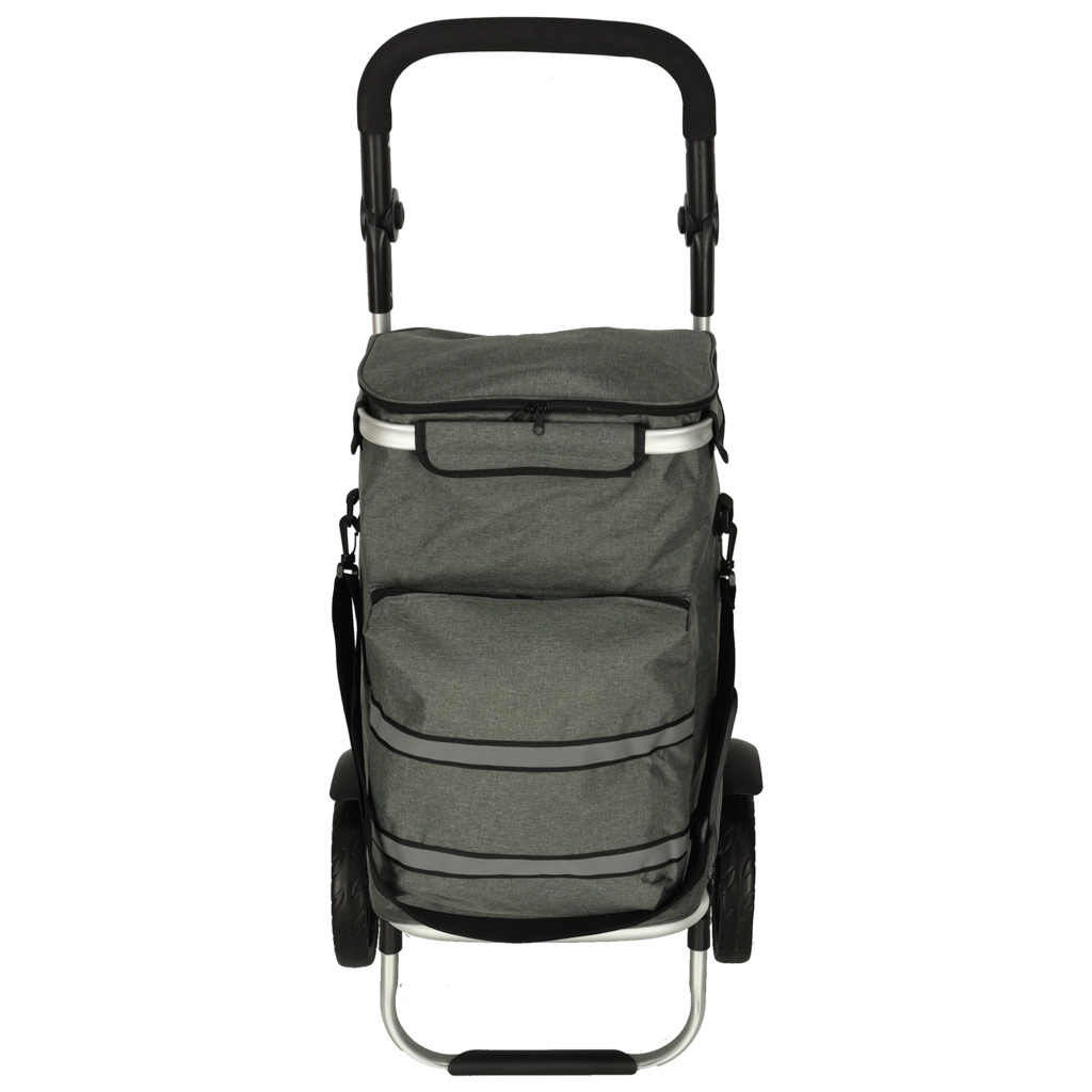 Le chariot dispose d’un intérieur spacieux de 40 litres et est équipé d’une poche isotherme pour le stockage d’aliments réfrigérés. Grâce à la poignée ergonomique et aux grandes roues, le chariot est facile à manœuvrer.