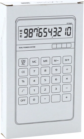 La calculatrice est équipée d’un écran LCD lisible à 10 chiffres et d’un large éventail de fonctions : opérations mathématiques de base, calculs de pourcentage, racine carrée, changement de signe, mémoire (MC, MR, M+, M-), touches ON/AC, OFF, CE et point décimal. L’appareil fonctionne en alimentation double – pile et énergie solaire – assurant une utilisation fiable dans différentes conditions.