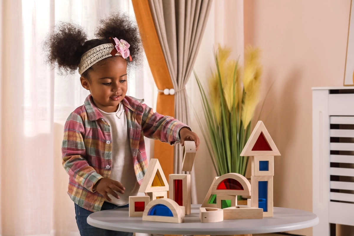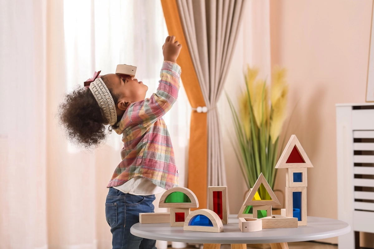 Triangles, carrés, rectangles et demi-cercles favorisent la perception spatiale et des structures stables lors de l’empilage et de l’assemblage.