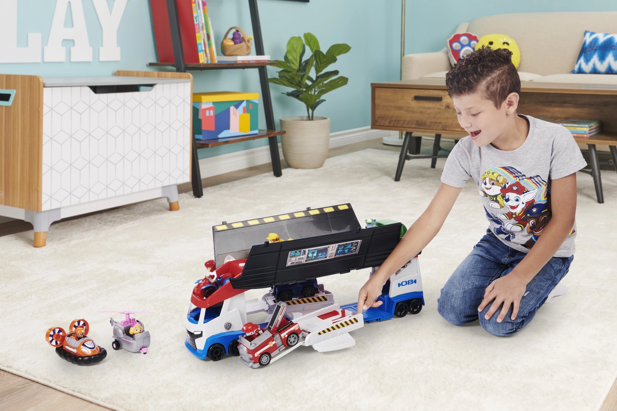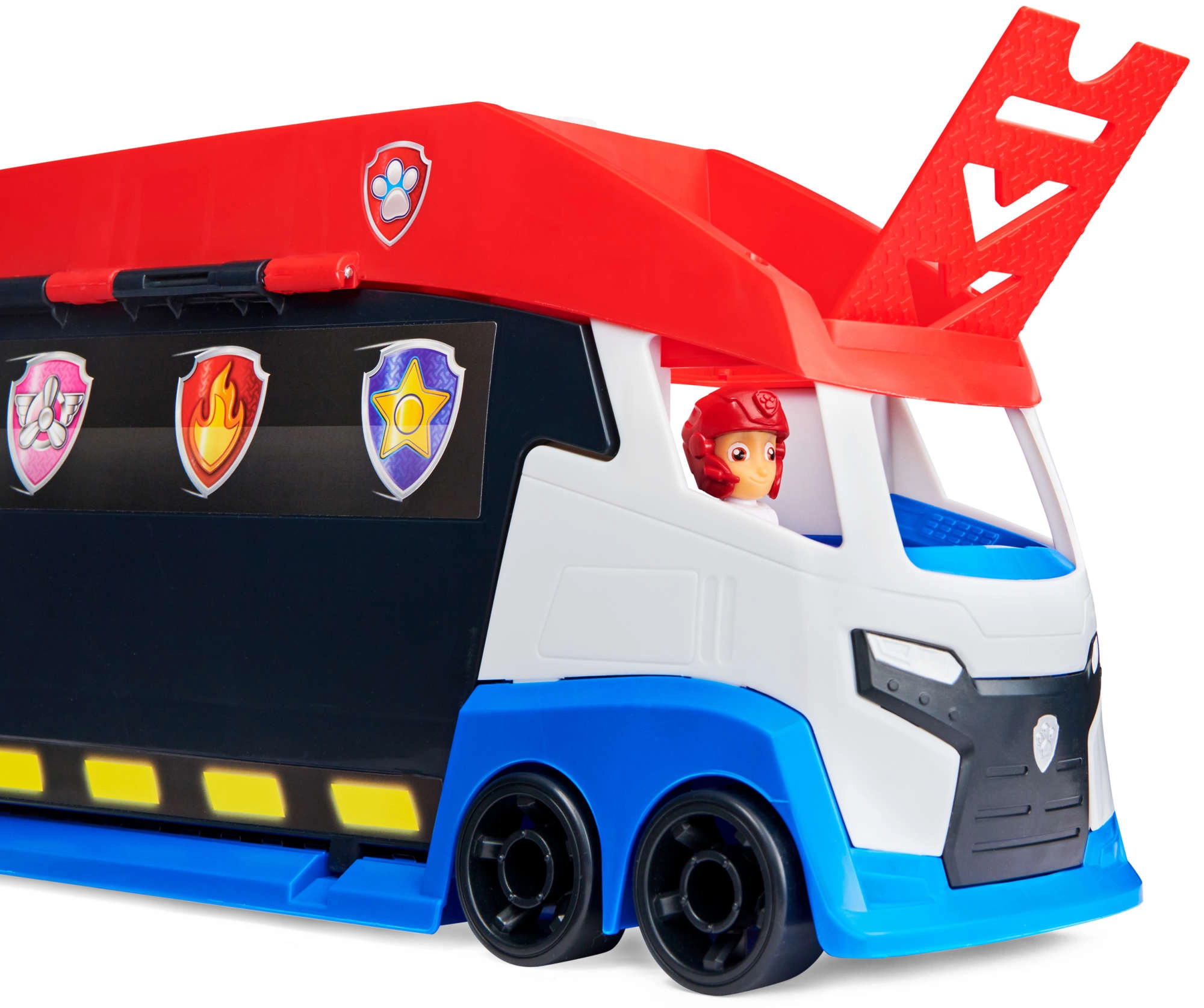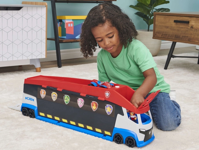 Ce gigantesque transporteur, inspiré de la série PAW PATROL, ravira tous les petits sauveteurs. Grâce aux panneaux latéraux rabattables et aux rampes, la carrosserie du camion se transforme en station mobile et en quartier général. En appuyant sur le bouton à logo patte, on entend des sons réalistes de moteur, de klaxon et de marche arrière, renforçant l’immersion.