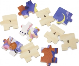 La scène colorée avec une licorne, des fées et un château motive les enfants à assembler le puzzle et à inventer leurs propres histoires.