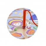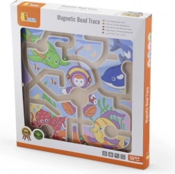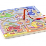 La baguette magnétique guide les billes à travers le labyrinthe et entraîne naturellement la préhension, la coordination œil–main et la patience lors de la réalisation des tâches.