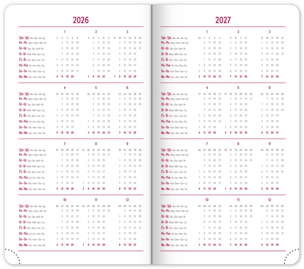 L'agenda contient également un espace pour les informations personnelles, des coins perforés et un espace pour les notes, ce qui en fait un compagnon parfait pour une utilisation quotidienne.