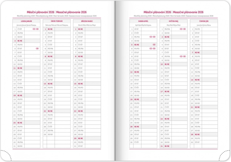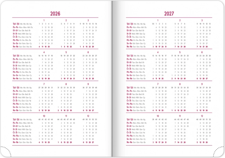 Un porte-stylo et un élastique de fermeture sont également inclus, assurant un agenda pratique pour un usage quotidien. Profitez d’un agenda parfait qui vous accompagnera à chaque étape de votre année 2026.