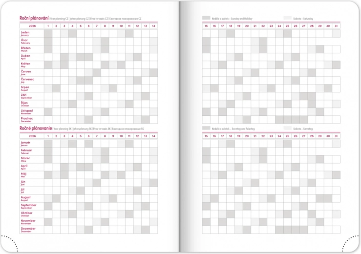 Nous vous présentons un agenda hebdomadaire pour 2026 qui offre non seulement du style, mais aussi une grande fonctionnalité. Sa surface légèrement texturée avec un relief atypique est idéale pour tous les marquages, tandis que les coins arrondis ajoutent une touche d’élégance.
