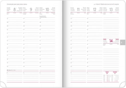 Comprend une vue hebdomadaire avec calendrier tchéco-slovaque et langues additionnelles : anglais, allemand, hongrois et russe.