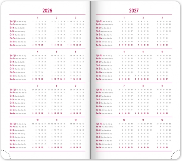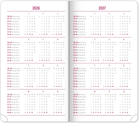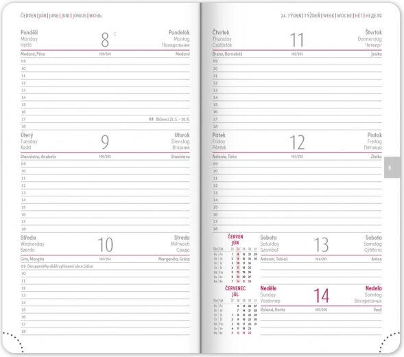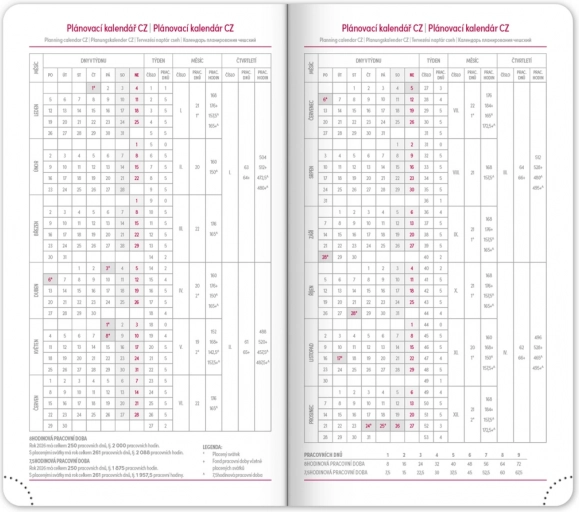 - Vue hebdomadaire avec calendrier tchéco-slovaque et compléments en anglais, allemand, hongrois et russe