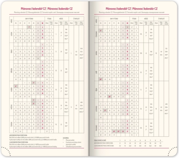 - Mise en page hebdomadaire avec calendrier tchèque-slovaque complété par l’anglais, l’allemand, le hongrois et le russe.