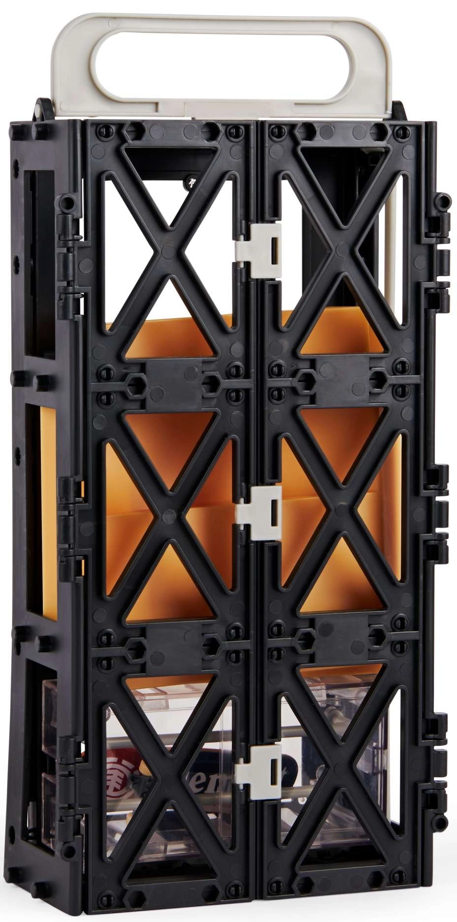 Le présentoir pratique avec poignée garde ta collection en sécurité et bien visible. Emporte-la partout, toujours prête à rider.