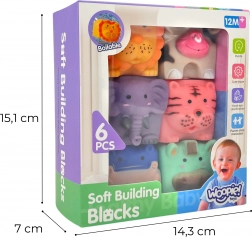 Les Woopie Blocs pour la perception sensorielle sont idéaux pour le développement de votre enfant. Grâce à leurs formes, couleurs et effets sonores variés lorsqu’on appuie dessus, ces blocs sont un excellent outil pour stimuler le développement sensoriel. Les blocs présentent des formes en relief représentant des animaux et sont souples, agréables au toucher et émettent des sons lorsqu’on les presse, ce qui ravira chaque enfant. Ils servent également de hochet/mordeur et permettent aux enfants de découvrir le monde de la nature.