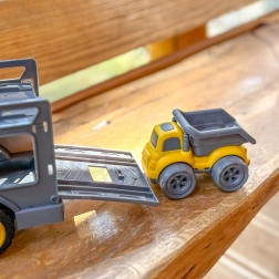 Le grand porte-engins avec rampes permet de charger et transporter facilement les trois véhicules. Sa structure stable résiste même aux jeux intensifs des enfants.