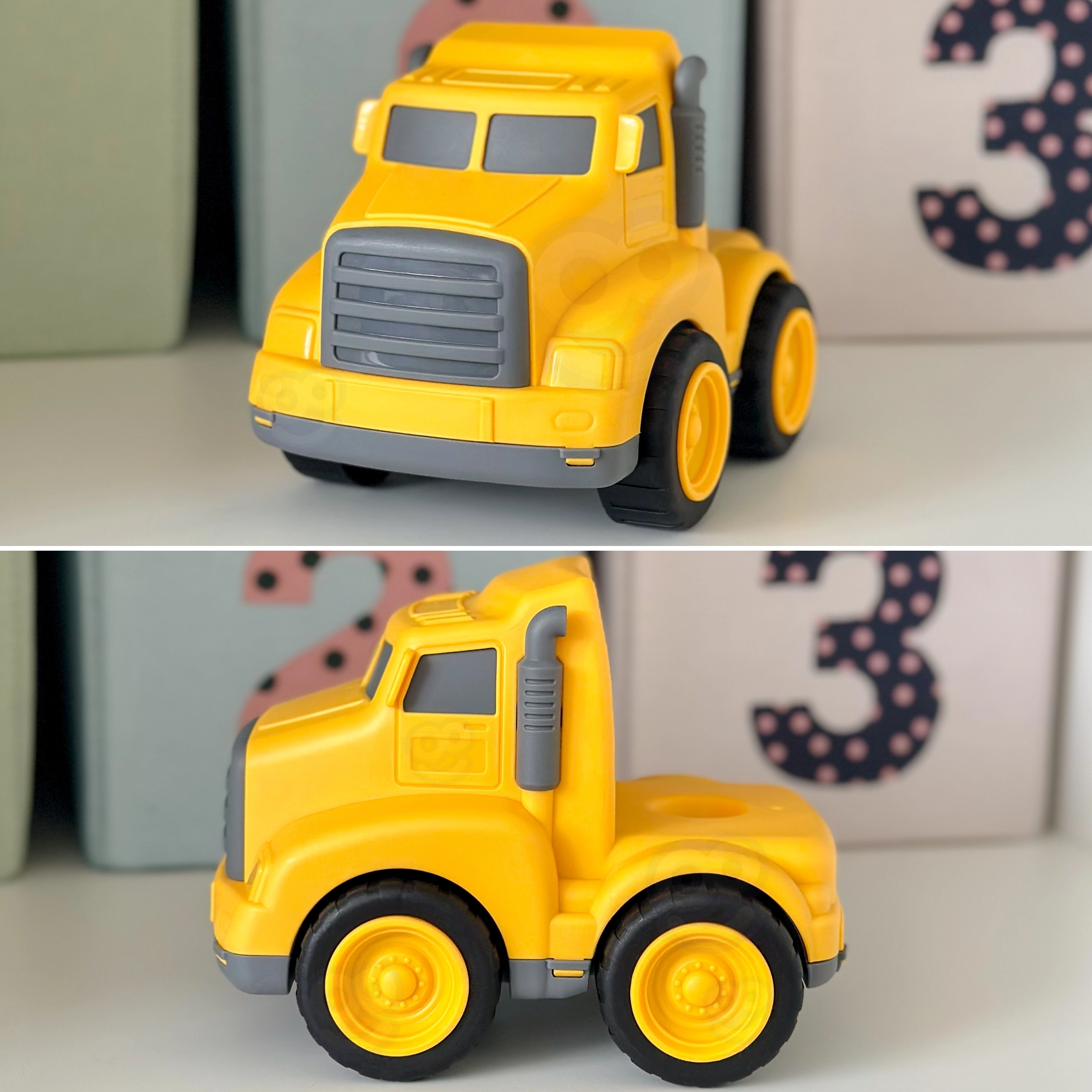 La fabrication en plastique résistant et les grandes roues s’adaptent aux tapis, aux planchers en bois et aux aires de jeu. Idéal pour les jeux d’imagination et le développement de la motricité.