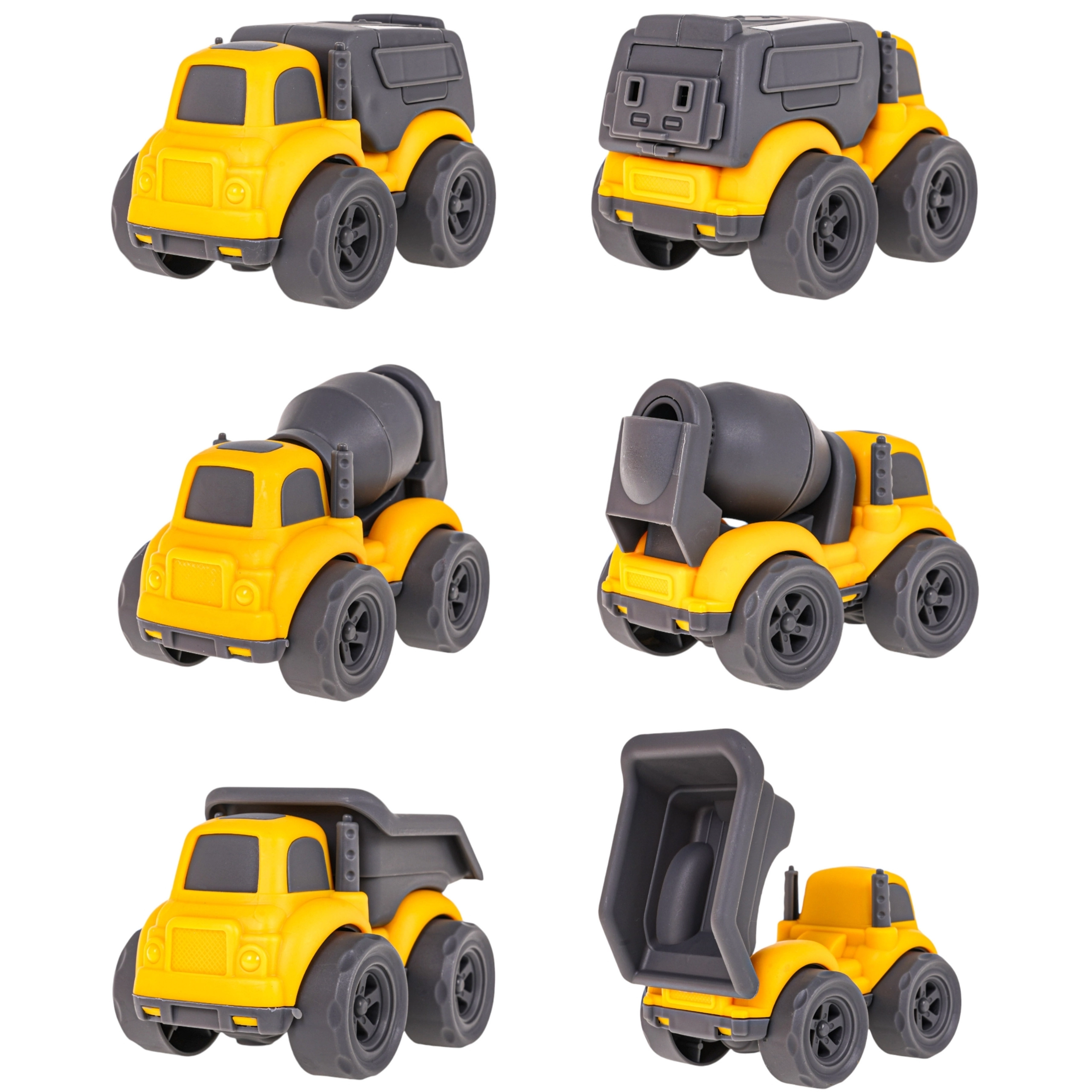Une fabrication en plastique sûre et robuste, des bords arrondis et des couleurs vives font de cet ensemble un choix idéal pour jouer au quotidien à la maison comme dehors. Les enfants exercent leur créativité, leur imagination et leur coordination en chargeant et déchargeant les véhicules, en transportant des cargaisons ou en simulant des travaux de chantier.