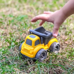 Le set de trois véhicules WOOPIE transporte les enfants directement sur le chantier. Chaque véhicule possède des parties mobiles pour des scénarios authentiques – la bétonnière fait tourner son tambour, la benne basculante relève sa caisse et le camion-benne à ordures permet le chargement des déchets. Grâce au mécanisme à friction, il suffit de pousser le véhicule pour qu’il avance tout seul, favorisant un jeu actif sans piles.