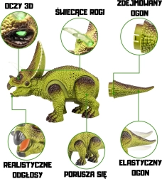 Explorez la magie des temps préhistoriques avec le Tricératops ludique et interactif de Woopie. Ce dinosaure télécommandé offre une combinaison fascinante de réalisme et de fonctions de jeu :