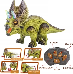 Découvrez le monde préhistorique avec le Tricératops télécommandé de la marque Woopie ! Avec ses détails réalistes, ses cornes et yeux lumineux et sa mâchoire rugissante, il ressemble à un véritable dinosaure. Le Tricératops avance et recule, danse et combat – le tout contrôlé par une télécommande pratique.