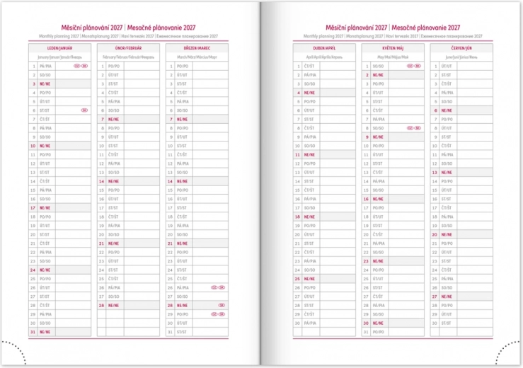 - Calendrier mensuel de planification pour les années 2026 et 2027