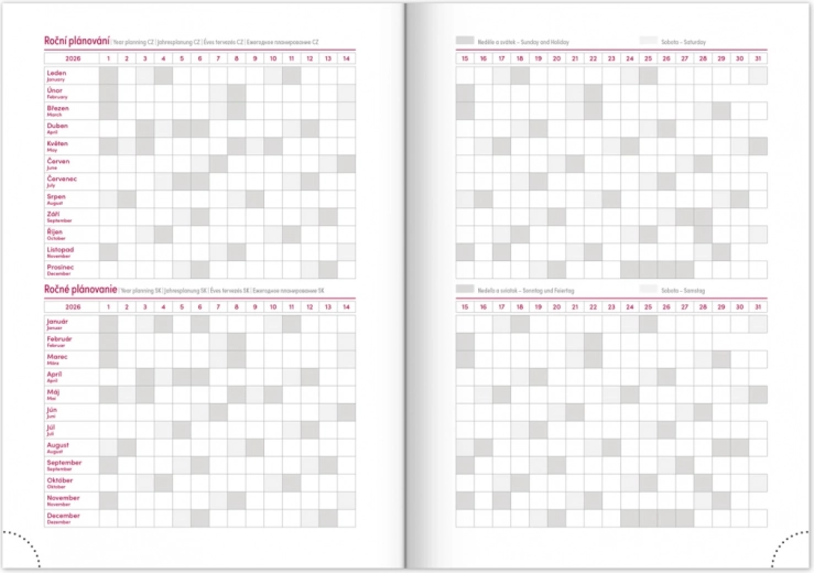 - Calendrier de planification mensuel et annuel pour les années 2026–2027