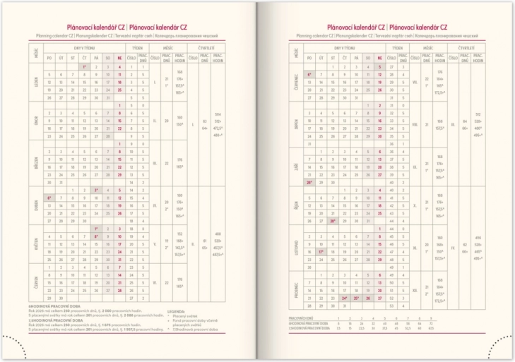 Agenda semainier élégant et écologique avec couverture couleur cerisier pour l’année 2026. Il comprend un calendrier tchéco-slovaque complété par l’anglais, l’allemand, le hongrois et le russe. La solution parfaite pour organiser vos plans.