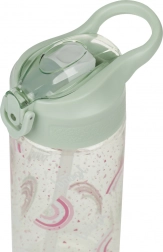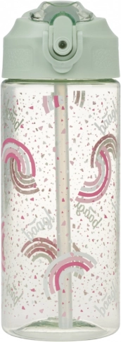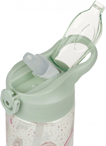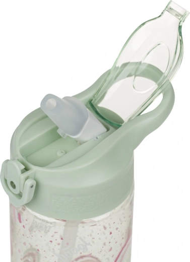 Bouteille avec paille intégrée et embout rabattable, idéale pour une hydratation simple et confortable.