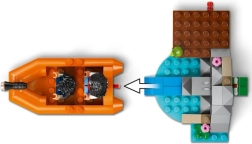 Construisez le hangar avec son quai, envoyez le bateau à l’aventure grâce au lanceur et laissez le T-rex détruire la structure – puis reconstruisez-la facilement.