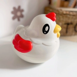 Le poulet s’ouvre, ce qui permet de ranger facilement tous les éléments à l’intérieur et d’encourager l’enfant à organiser et maintenir l’ordre.