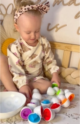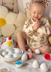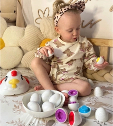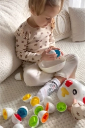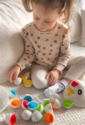 Le poulet trieur coloré de la marque WOOPIE est un jouet éducatif multifonction qui développe chez l’enfant des compétences clés par le jeu. Il comprend un ensemble d’œufs-jouets que l’enfant doit insérer correctement dans les ouvertures correspondantes, apprenant ainsi la reconnaissance des formes et des couleurs et développant sa déxtérité manuelle.