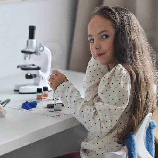 Ce microscope compact est un excellent choix pour un premier laboratoire à domicile. Grâce à trois niveaux de grossissement 200x / 600x / 1200x, à l’éclairage LED intégré et au filtre coloré rotatif, les enfants peuvent facilement voir les structures des cellules végétales, des fibres et les détails fins de petits échantillons.