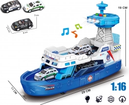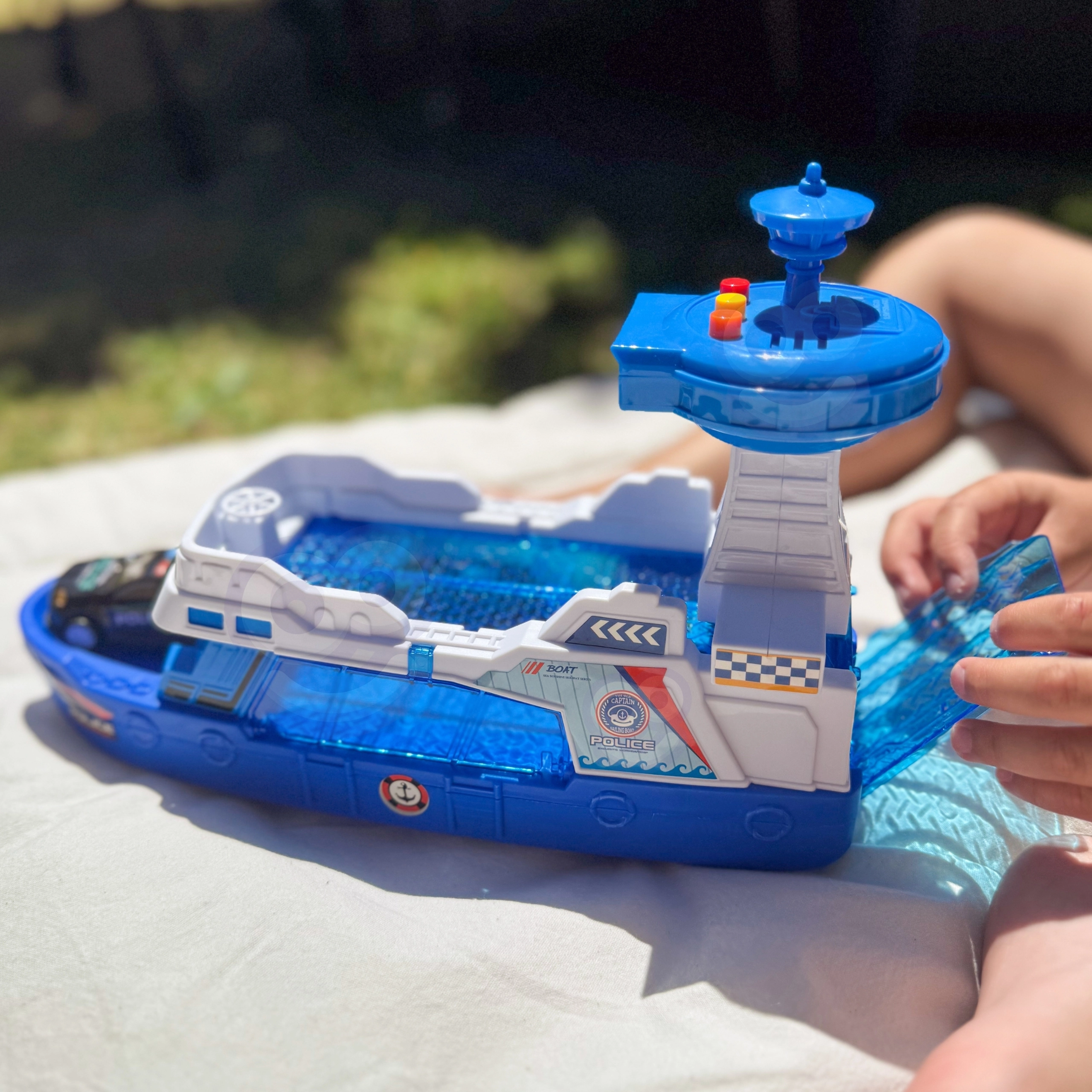 - Bateau de patrouille de police interactif avec set de petites voitures