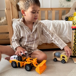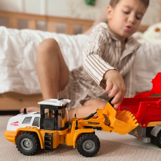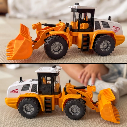 Transformez la chambre en chantier avec la chargeuse WOOPIE 1:16. Des détails authentiques, une cabine transparente et un bras avec godet fonctionnel permettent de charger et de décharger les matériaux comme sur un vrai site. Les lumières et sons ajoutent de l’ambiance, et la propulsion à friction garantit une conduite fluide d’une simple poussée.