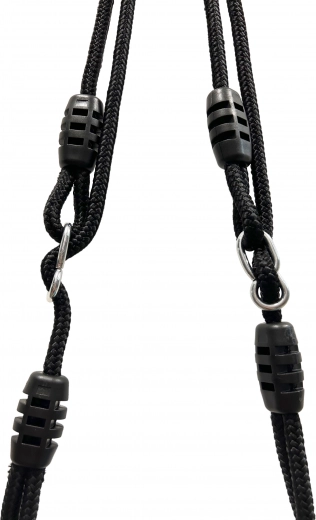 Cordes tressées avec butées en plastique permettant un réglage rapide de la longueur jusqu’à 200 cm et une suspension fiable à différentes hauteurs.