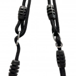 Un système de suspension robuste avec boucles coulissantes et anneaux métalliques assure une fixation fiable et un balancement stable en extérieur comme sur les structures de jeu.
