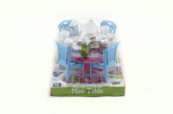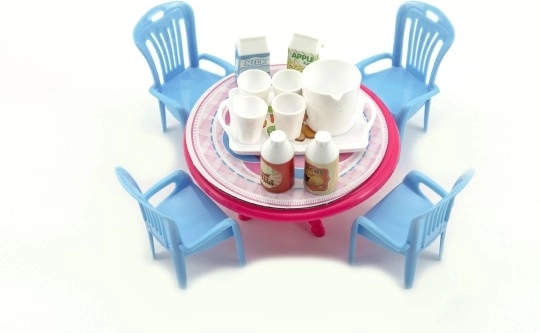 Adorable set pour poupées comprenant une table et des chaises en plastique avec accessoires, au format compact de 12 cm. Idéal pour la chambre d’enfant et favorise le jeu créatif, le développement de l’imagination et le jeu de rôle. Disponible en 3 variantes de couleurs. Convient aux enfants à partir de 3 ans.
