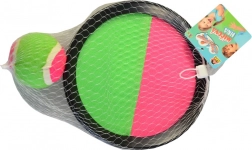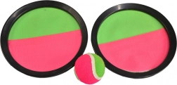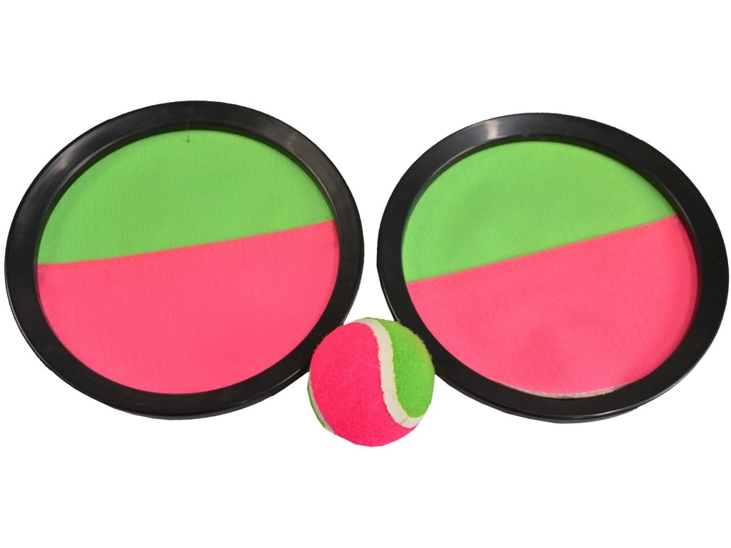 Profitez d'heures de jeu en plein air avec le Catch Ball. Ce jeu est parfait pour s'amuser aussi bien l'été au bord de l'eau qu'en hiver lors d'une agréable journée dehors. Il comprend deux plateaux en plastique avec une surface en velcro et une balle qui adhère légèrement au plateau. Il suffit qu'un joueur lance la balle et que l'autre la rattrape à l'aide du plateau.